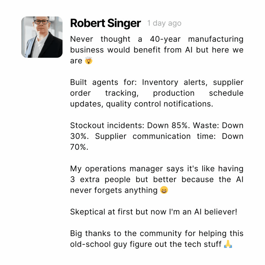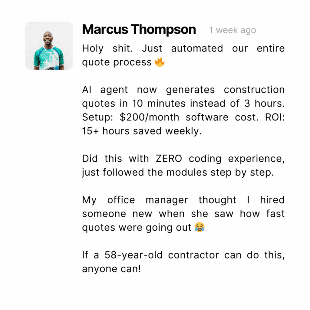 No Coding Experience Required (Seriously) – I don’t care if you failed computer science in high school. You don’t need to already know how to write a single line of code. We’re using no-code tools and platforms that let you build powerful AI agents with simple drag-and-drop interfaces.